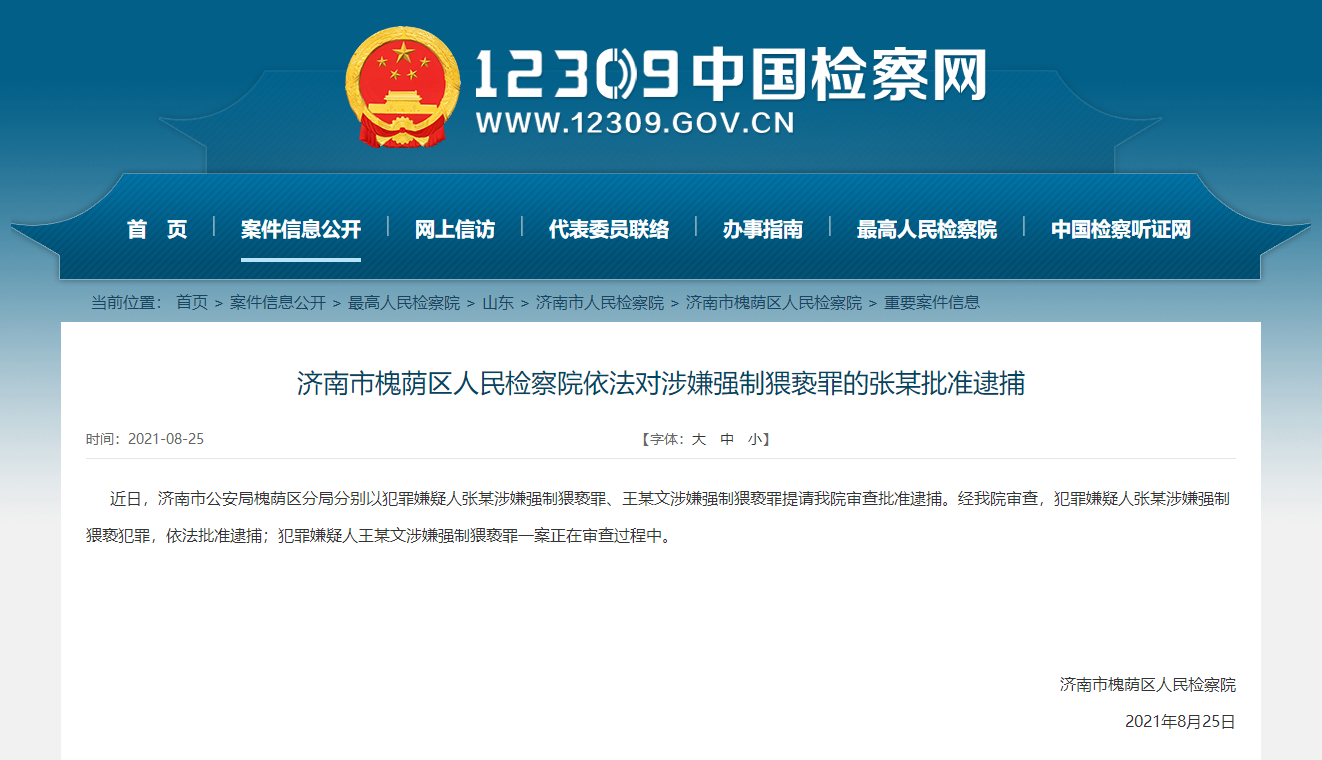 近日,济南市公安局槐荫区分局分别以犯罪嫌疑人张某涉嫌强制猥亵罪、王某文涉嫌强制猥亵罪提请济南市槐荫区人民检察院审查批准逮捕。经济南市槐荫区人民检察院审查,犯罪嫌疑人张某涉嫌强制猥亵犯罪,依法批准逮捕;犯罪嫌疑人王某文涉嫌强制猥亵罪一案正在审查过程中。