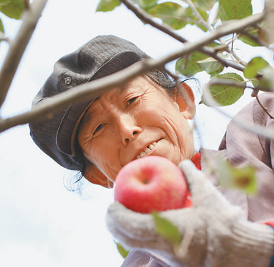 延安市宝塔区柳林镇后孔家沟村的果农在采收苹果。近年来,当地干部大力推广坑施肥水、豆菜轮茬等苹果种植新技术,带领群众增收致富。目前,后孔家沟村年户均收入已超10万元。