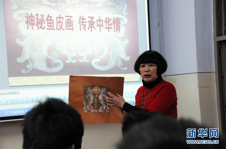 张琳在哈尔滨轻工业学校讲授鱼皮画制作技艺