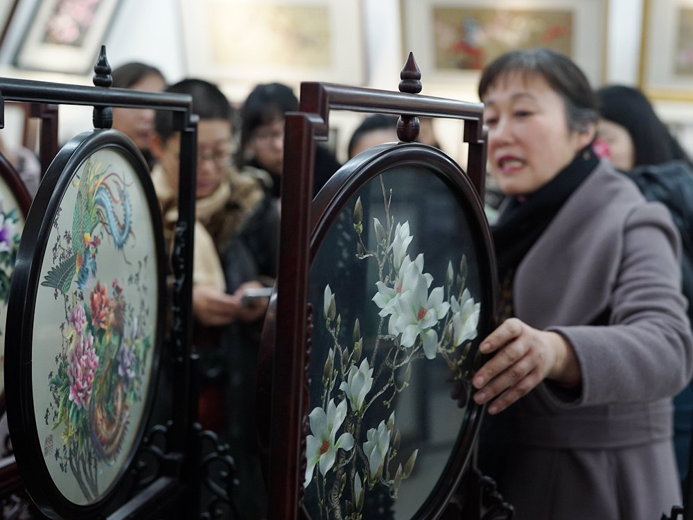 人民网苏州2月12日电(柳静 皇甫万里)在苏州镇湖绣品街上,有大大小小几百家绣庄,国家级非物质文化遗产项目(苏绣)传承人、首届中国刺绣艺术大师、沈寿仿真绣第四代传承人——姚惠芬的刺绣艺术馆正坐落于此,艺术馆中展示了许多姚惠芬的苏绣精品作品。