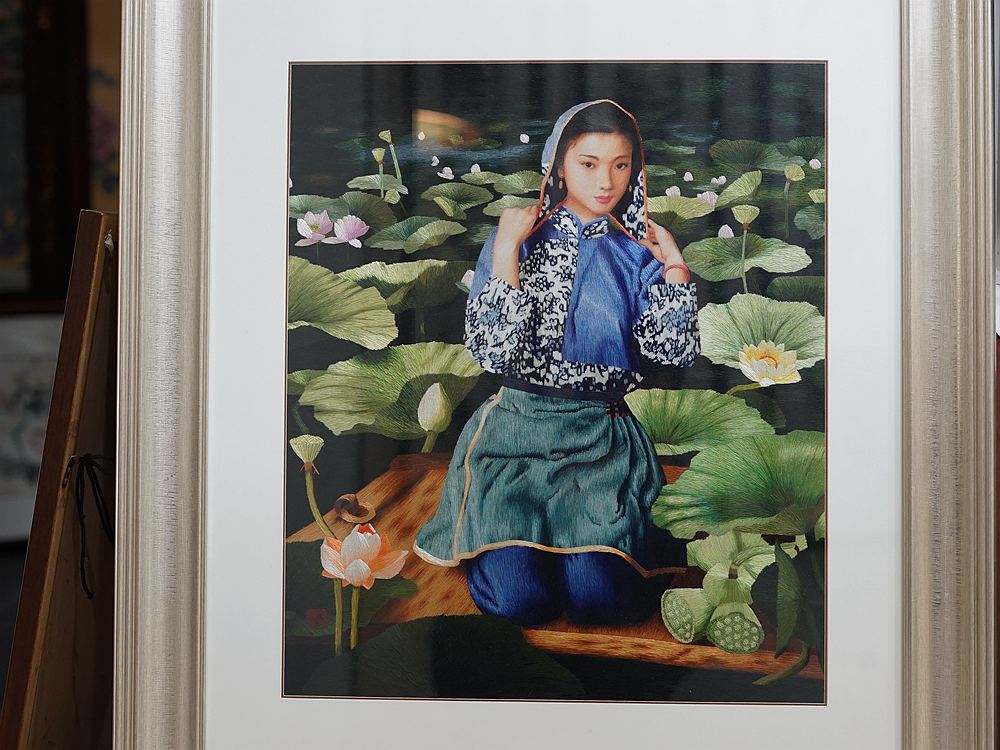 远观这些苏绣作品,更像是一幅幅精美的画作,很难看出他们是被一针一线绣出来的,但走进欣赏就会发现作品上细密的针脚。