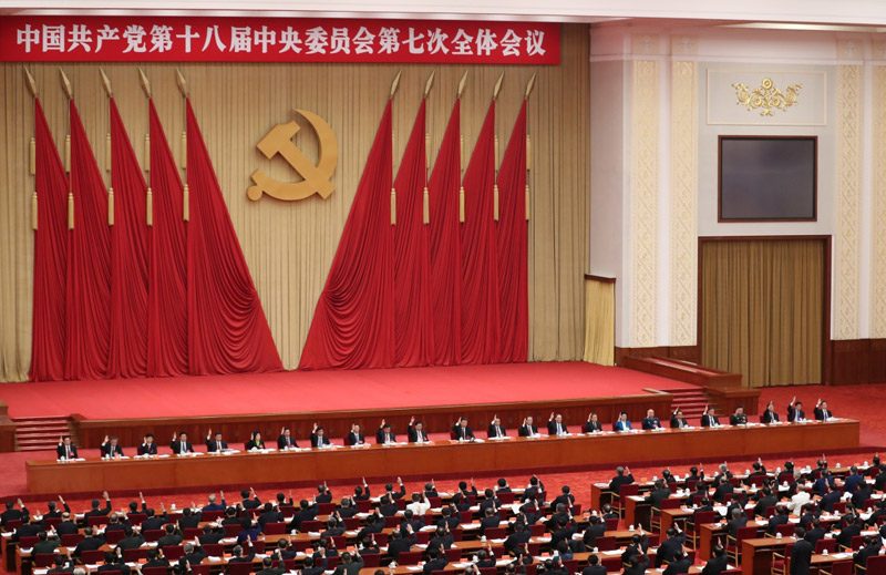 中国共产党第十八届中央委员会第七次全体会议,于2017年10月11日至14日在北京举行。中央政治局主持会议。 全会强调,我们党是一个有着8900多万名党员的大党,是一个领导着13亿多人民进行改革开放和社会主义现代化建设的执政党,如果没有党中央权威和集中统一领导、没有严格的政治纪律和政治规矩、没有风清气正的良好政治生态,就会丧失创造力、凝聚力、战斗力,就会丧失执政基础和执政能力,就会严重脱离人民,就不可能担负起领导人民进行改革开放和社会主义现代化建设的历史重任。全党必须牢固树立政治意识、大局意识、核心意识、看齐意识,坚决维护党中央权威,坚决服从党中央集中统一领导,在思想上政治上行动上同以习近平同志为核心的党中央保持高度一致。必须坚持党的领导,坚持和完善民主集中制,坚持党领导各项工作的体制机制,确保党对一切工作的领导,确保党总揽全局、协调各方。必须坚持党的理论和路线方针政策不动摇,不折不扣执行党中央决策部署,任何地方和部门的工作都必须以贯彻党中央决策部署为前提。党的各级领导干部特别是高级干部必须对党忠诚,做到心中有党、心中有民、心中有责、心中有戒,增强政治定力、纪律定力、道德定力、抵腐定力,自觉维护党中央权威和党的团结统一,为全党作出表率。 全会全面分析了当前形势和任务,深入讨论了新形势下进行具有许多新的历史特点的伟大斗争、建设党的建设新的伟大工程、推进中国特色社会主义伟大事业、实现民族复兴伟大梦想的若干重大问题,为召开党的第十九次全国代表大会作了充分准备。 |